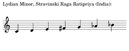 - Name Of Scale: Lydian Minor, Stravinski Raga Ratipriya (India)