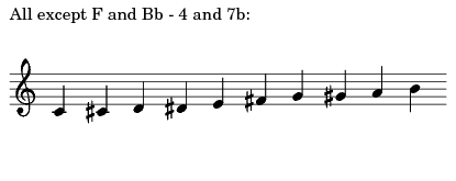 - Name Of Scale: All except F and Bb – 4 and 7b